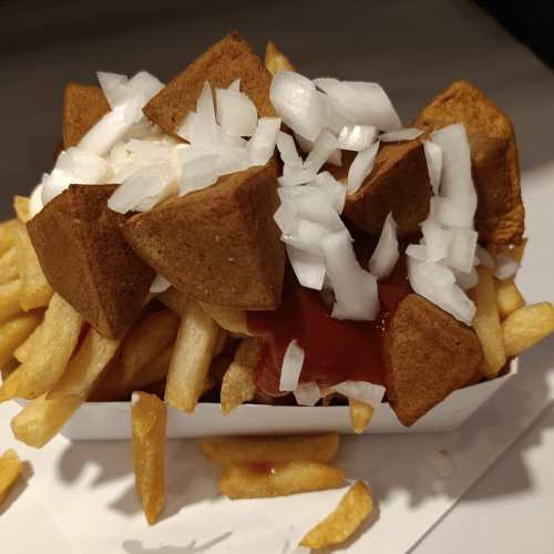 De snack bestaat uit blokjes kalkoenvlees afgewisseld met stukjes witte ui en gedipt in een deegbeslag. In frituurvet wordt dit in enkele minuten knapperig ...
